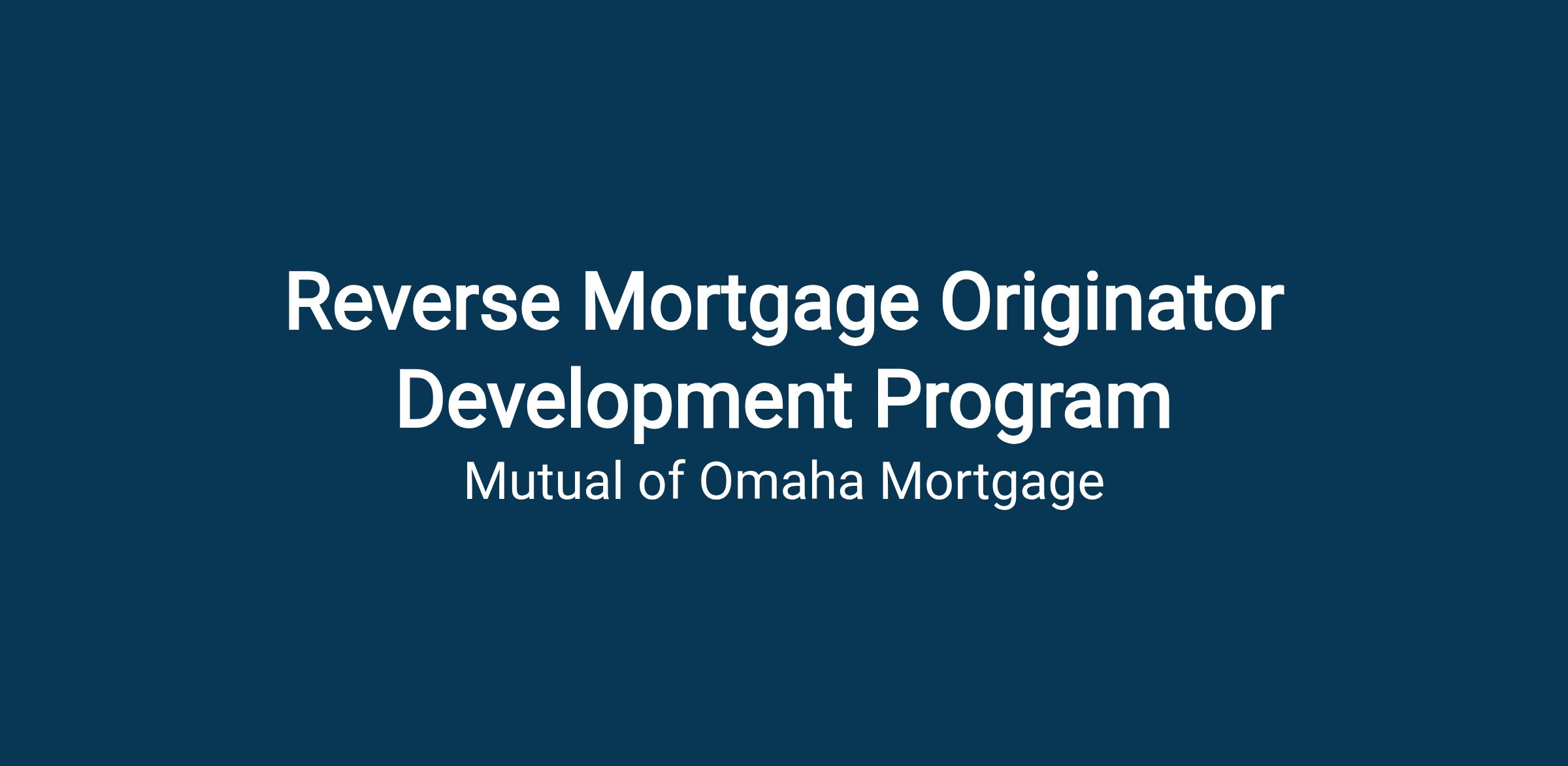 This is a great opportunity to launch your career into the reverse mortgage industry with our 12-month development program.
