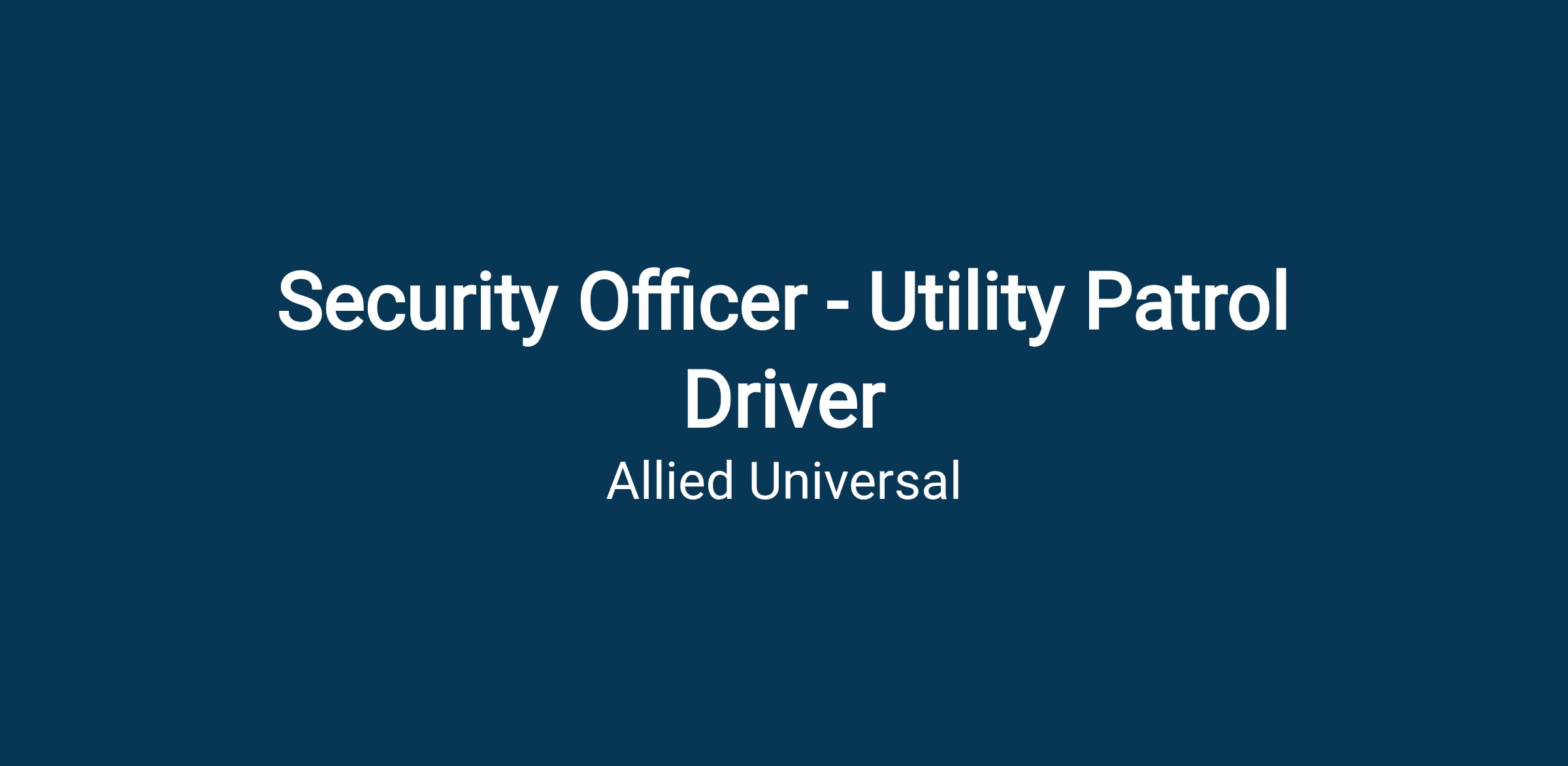 Allied Universal® is an Equal Opportunity Employer. All qualified applicants will receive consideration for employment without regard to race/ethnicity, age, color, religion, sex, sexual orientation, gender identity, national origin, genetic information, disability, protected veteran status or relationship/association with a protected veteran, or any other basis or characteristic protected by law. For more information: www.aus.com.