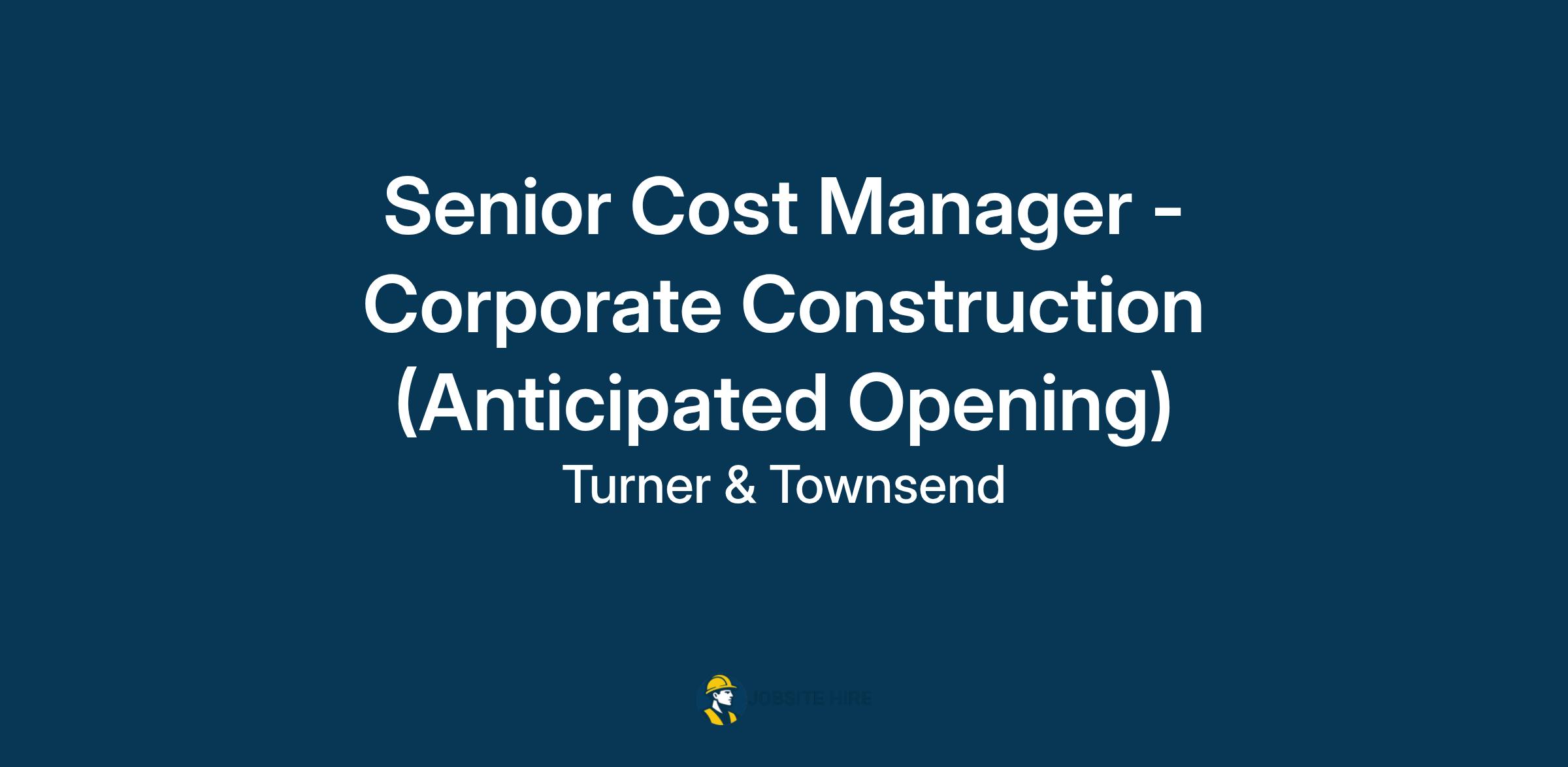 Turner & Townsend are looking for an experienced Senior Cost Manager and/or Quantity Surveyor to act as the key, day to day client interface, ensuring that client objectives are met through the delivery of a value-added cost management service.