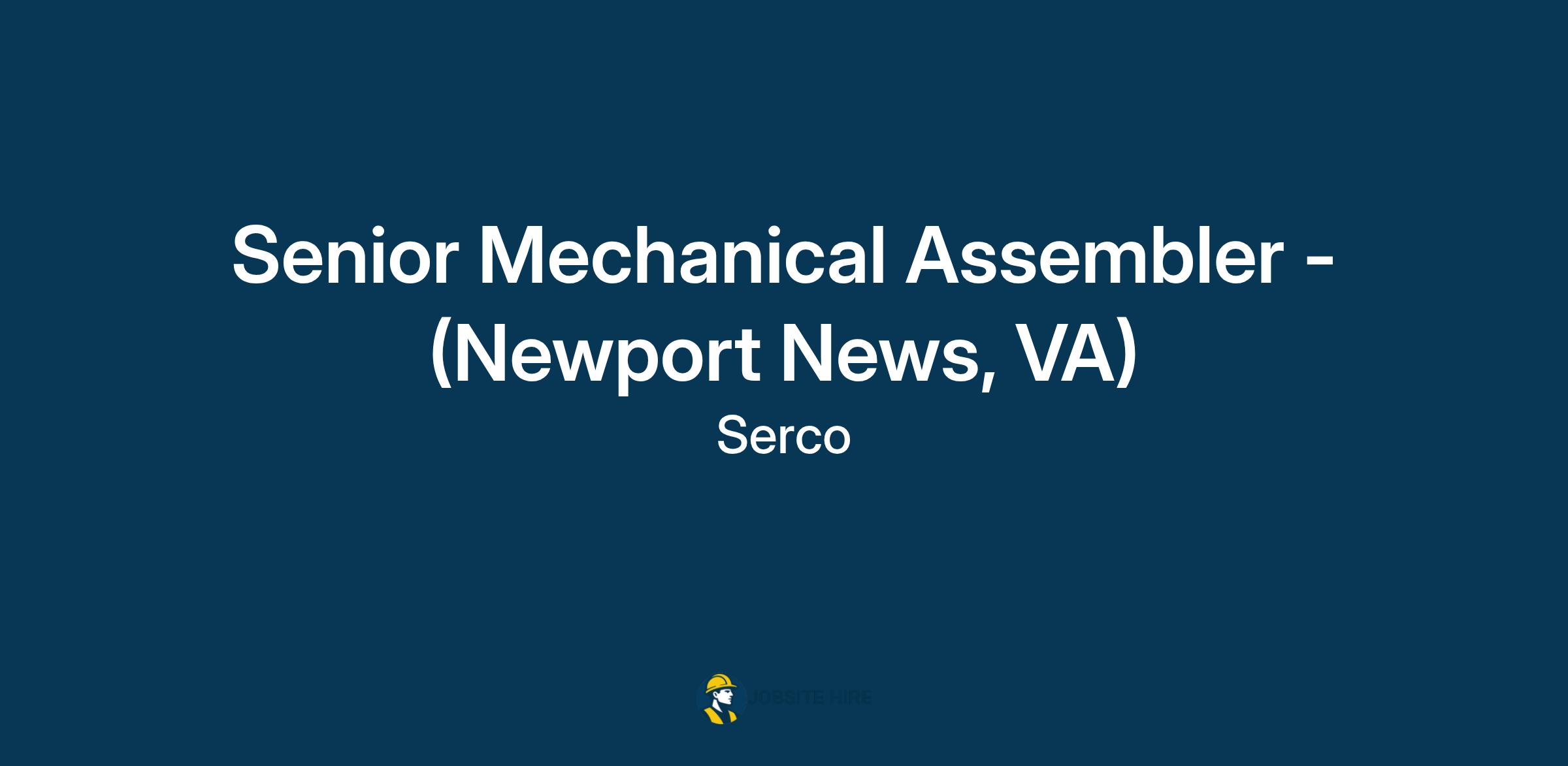 If you love and enjoy engaging in manual projects supporting the U.S Navy and our U.S Naval Ships, Serco has a great opportunity for you! Serco is looking for Experienced Mechanical Assemblers to join a high-profile and challenging project supporting the US Navy in Newport News, VA.