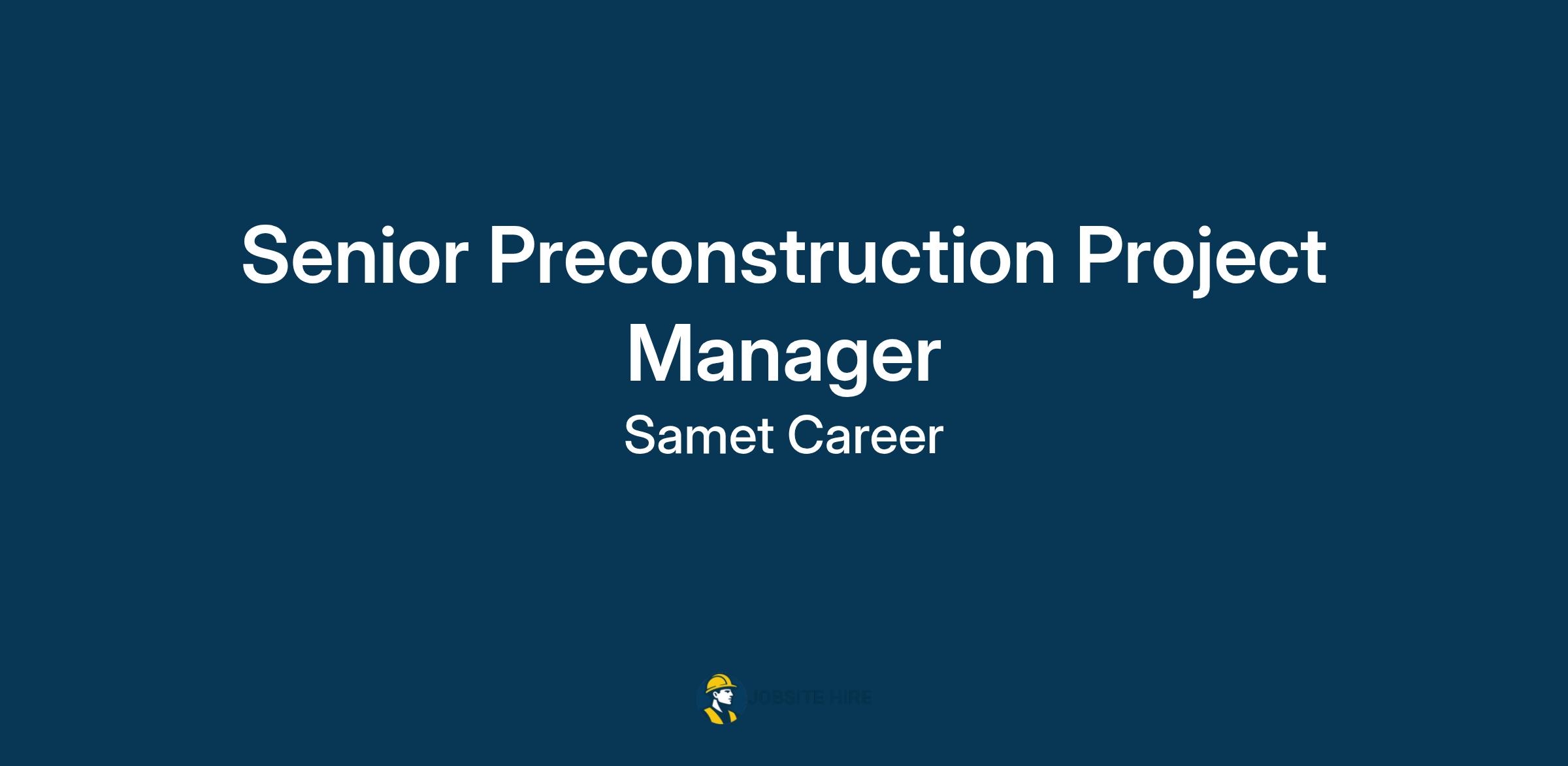 As a Senior Estimator / Preconstruction Project Manager for Samet, you will: