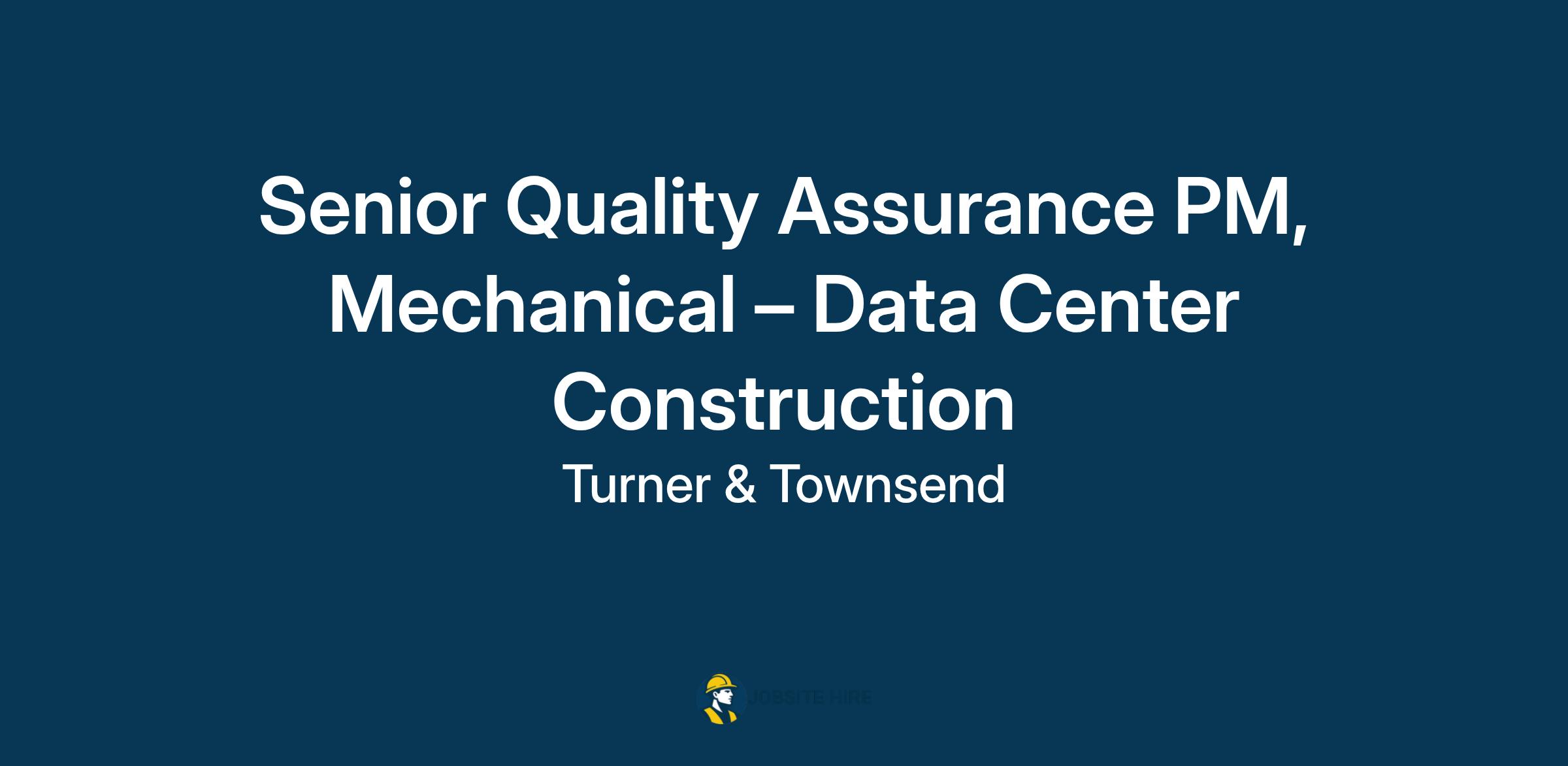 Turner & Townsend are seeking an experienced Sr Quality Assurance PM, Mechanical to join our team in support of the Data Center Construction team. The ideal individual will have prior experience supporting large-scale construction projects.