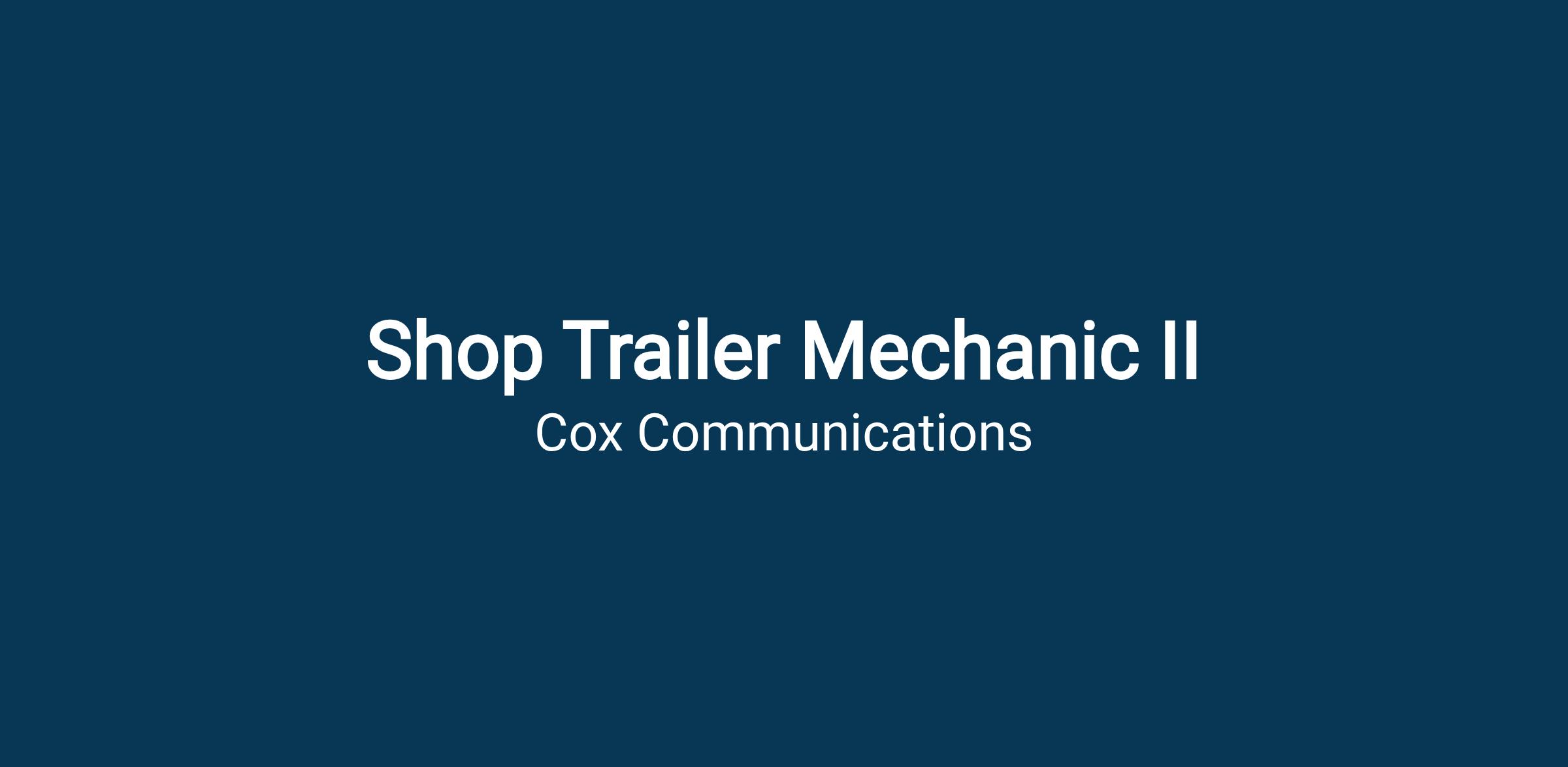 Cox Fleet is currently hiring a Shop Trailer Mechanic II. This is a dedicated on-site shop position and we do not provide emergency side of the road type of repairs. If you are looking for a new place to call home, we would love to talk to you! The Shop Trailer Technician II will be responsible for performing certified DOT inspections, Preventative Maintenance inspections, light repairs, and other duties as assigned such as aluminum and chem-lite, trailer brakes, air lines, auxiliary pumps and engines, liftgates, brake chambers, welding, fabrication, replacement of panels, body, and framework. The Shop Trailer Technician II can perform more advanced repairs under the supervision of a Sr Shop Trailer Technician or higher. The Shop Trailer Technician II assists Sr Shop Trailer Technician or higher Technicians with repairs and continues to learn additional advanced mechanical skills. A successful Shop Trailer Technician II complies with all company policies and achieves high level performance metrics.