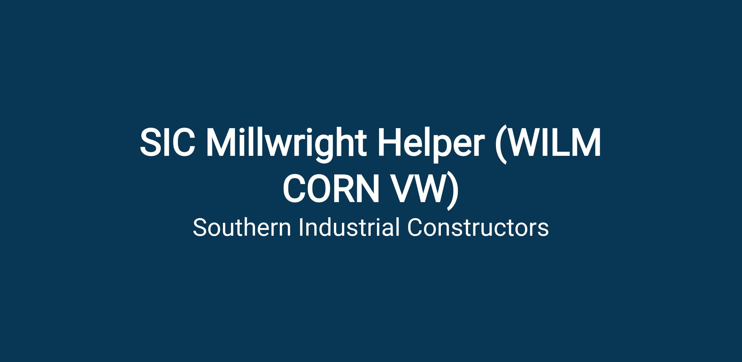 Job Title: SIC Millwright Helper (WILM CORN VW)
