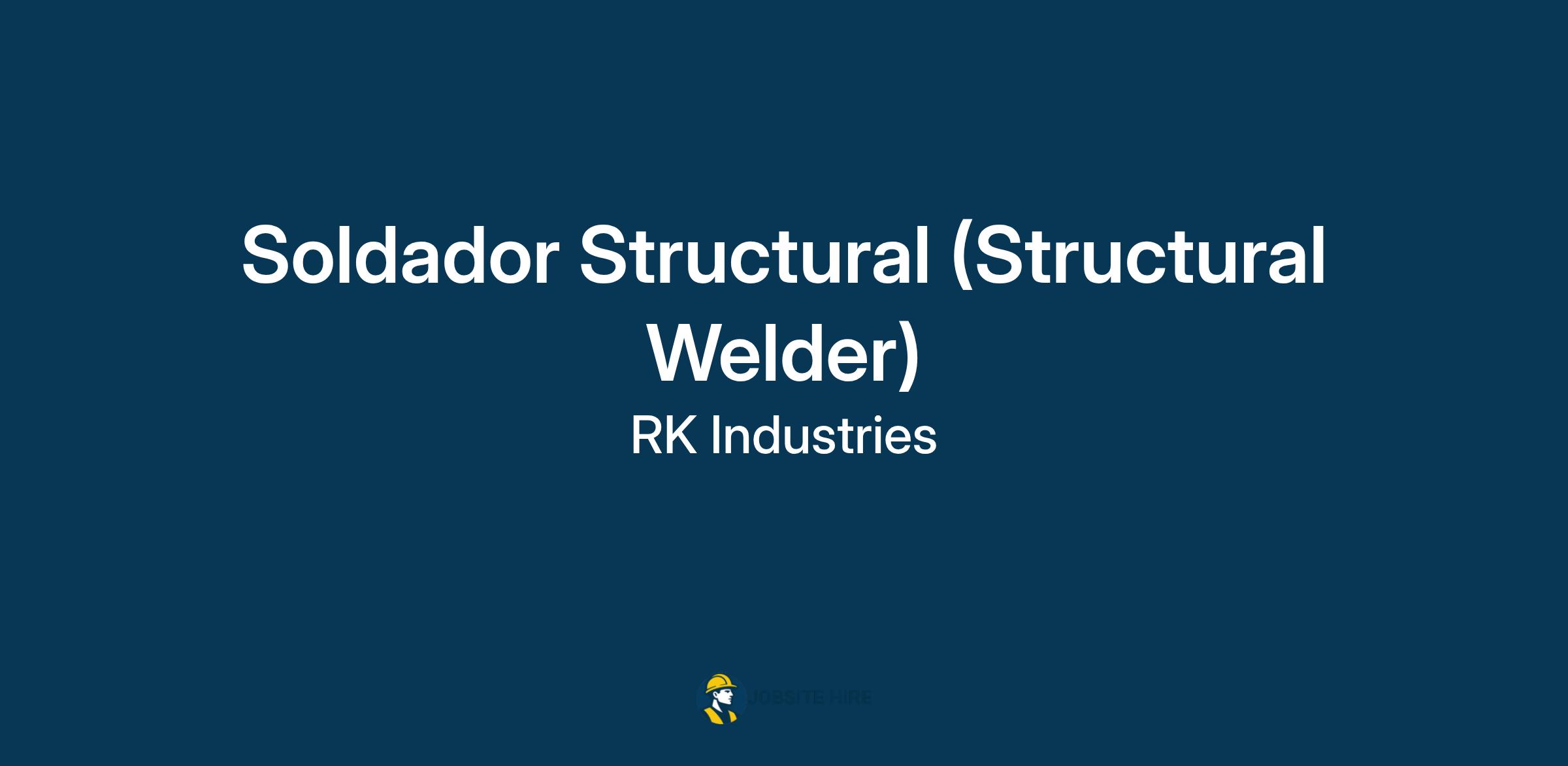 Soldador Estructural (Structural Welder 5341) Forma parte de una empresa reconocida por su excelencia, innovación y compromiso con el desarrollo de sus empleados. Como Soldador en RK Industries, contribuirás directamente a la fabricación de productos de alta calidad en un entorno colaborativo y orientado a la mejora continua. Además, tendrás oportunidades de crecimiento profesional, acceso a capacitación especializada y un paquete de beneficios competitivos.