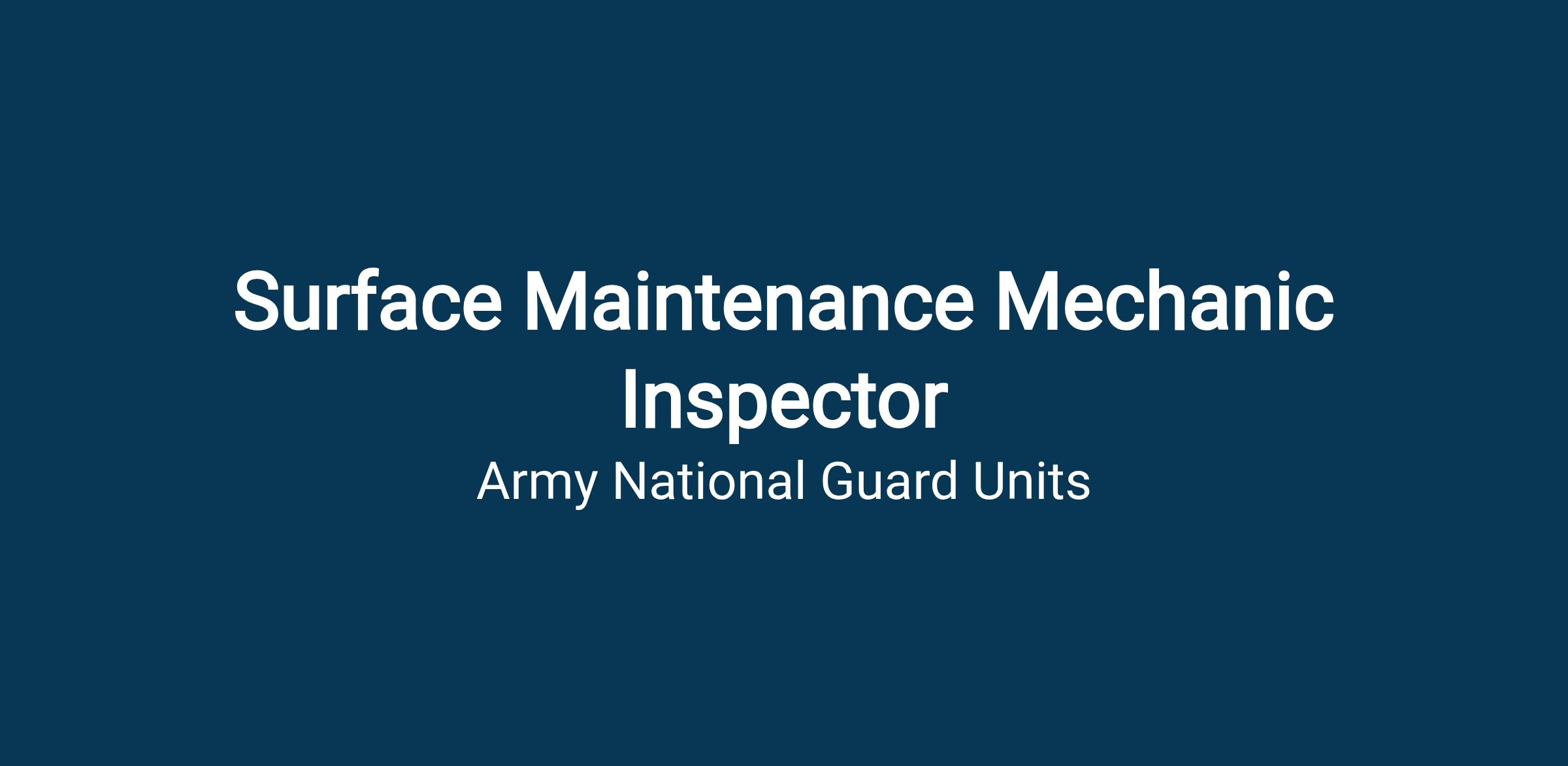 This National Guard position is for a SURFACE MAINTENANCE MECHANIC INSPECTOR, Position Description Number D1286000 and is part of the CO FMS 9, National Guard.