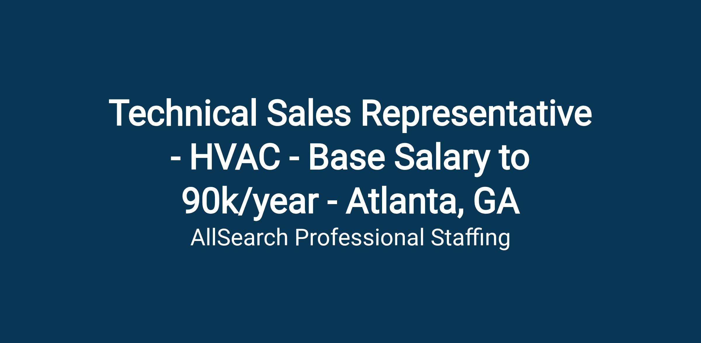 Technical Sales Representative - HVAC - Base Salary to 90k/year - Atlanta, GA
