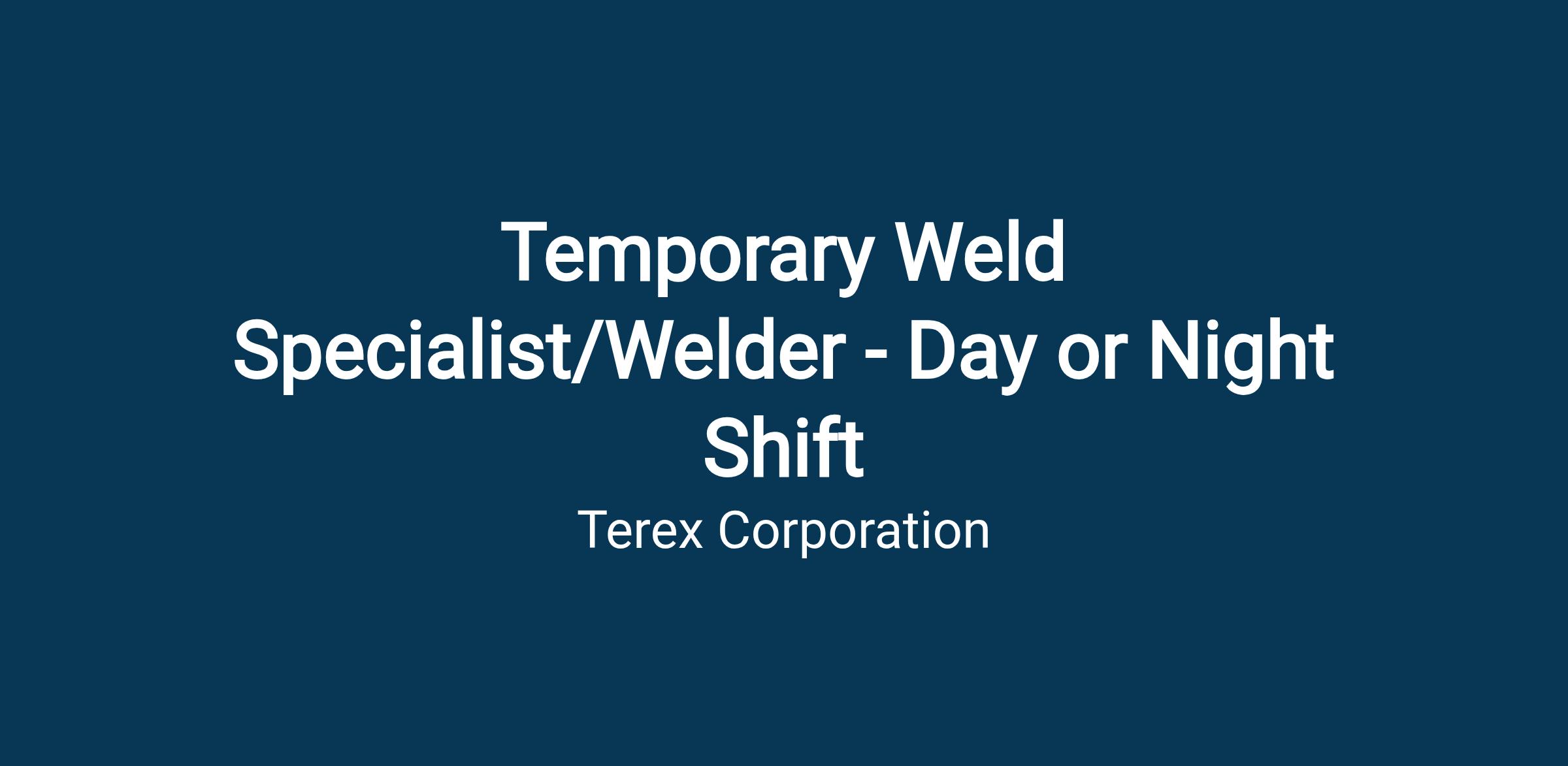 Join our team at Terex/Genie and embark on an exciting opportunity as we seek a skilled and dedicated Temporary Weld Specialist/Welder to contribute to the Genie team in Moses Lake, WA.