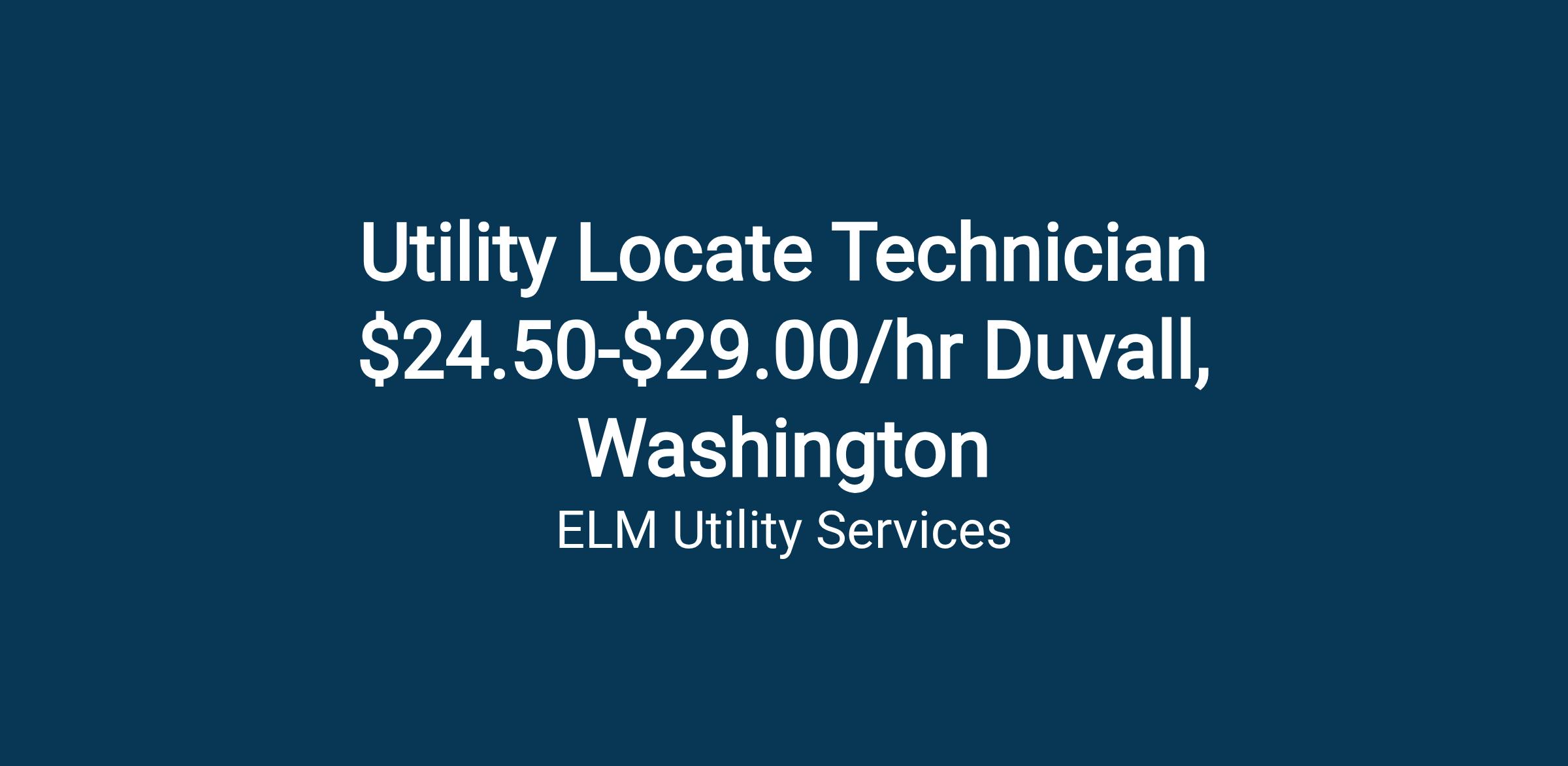 Utility Locate Technician $24.50-$29.00/hr Duvall, Washington