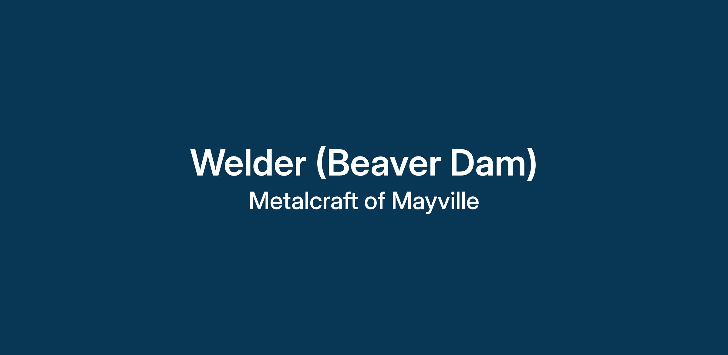 Our Beaver Dam facility is looking for Welder's who are primarily responsible for operating one or more weld machines to fabricate metal parts or assemblies to specifications applying to basic knowledge of welding theory on production basis.