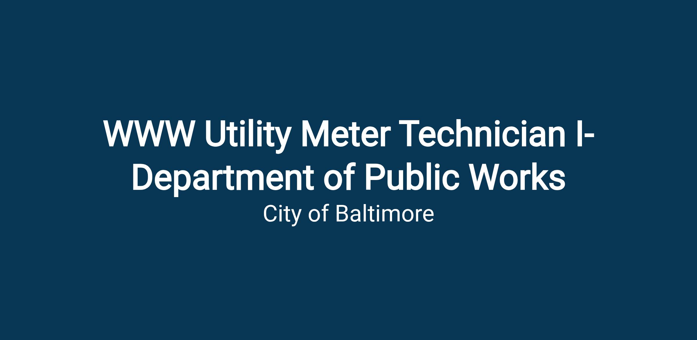 A WWW Utility Meter Technician I learns to perform a variety of routine manual labor regarding water meter activities for residential properties. The work of this class involves no supervisory duties or responsibilities.